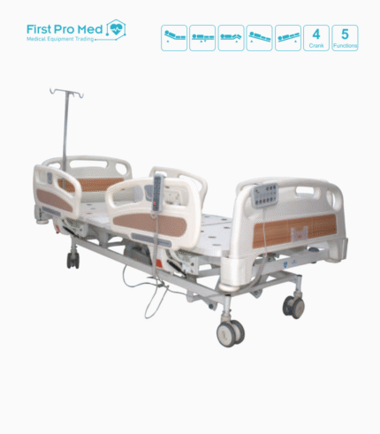 The 2-section mattress platform is made of perforated CRCA M.S. sheet, providing ventilation and support. Mounted on 5″ castors (2 with brakes), the bed is easy to move and secure in position. Additional features include a stainless-steel telescopic IV rod with 2 location provisions and a urine bag holder.